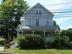 The Sidney A. Hill House is a historic house at 31 Chestnut Street in Stoneham, Massachusetts. The Queen Anne style Victorian wood-frame house was built c. 1895 for Sidney A. Hill, a partner in a shoe manufacturing business. The gables of the house feature Stick-style aprons and bands of cut shingles, and a porch that wraps around parts of the front and side of the house that features turned balusters and posts, and more Stick style detailing.[2]