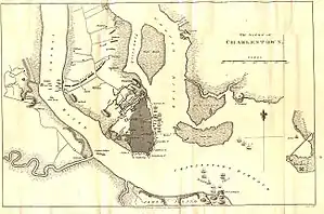 - 1 2 3 4 5 6 7 "The American Revolution in South Carolina – The Siege of Charlestown". Carolana.com. Retrieved 29 May 2018.