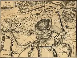 The siege of Mons, 15 March–10 April 1691, was a major operation fought during the Nine Years' War, and was the main French objective for the 1691 campaign in the Spanish Netherlands. The city was besieged and captured before the normal commencement of the campaigning season with minimal losses. The outcome was not in doubt, but in a conflict dominated by siege warfare, neither the French army of King Louis XIV, nor the forces of the Grand Alliance under King William III, could bring about a decisive battle. After the siege the duc de Boufflers bombarded the neutral city of Liège, whilst the duc de Luxembourg captured Halle, and scored a minor victory against the Prince of Waldeck at the Battle of Leuze in September. Strategically, however, little had changed in the war, and both combatants returned to winter quarters at the end of the campaigning season.