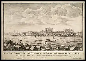 The siege of Pondicherry in 1760-1761, was a conflict in the Third Carnatic War, as part of the global Seven Years' War. Lasting from 4 September 1760 to 15 January 1761, British land and naval forces besieged and eventually compelled the French garrison defending the French colonial outpost of Pondicherry to surrender. The city was running low on supplies and ammunitions when French commander Lally surrendered. It was the third British victory in the region that was under the command of Robert Clive.