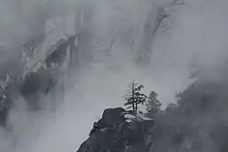 Following the rock slide, a portion of the trail approximately mid-way to Sierra Point is missing, although it is still possible to reach the point by scrambling over loose ground.[2] Although the trail is only 0.7 miles (1.1 km) long and about 1,000 feet (300 m) off the valley floor,[3] this hike should not be attempted by beginning hikers due to the difficulty of the missing portions of the trail. In fact, the National Park Service does not recommend that anyone take this trail. Despite this warning, many people still reach the point each year as it is easily accessible from the Vernal Fall trail in Happy Isles, and still has the original railing at the top.