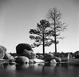 A portion of the Sierra de Juárez is protected within Constitution 1857 National Park, approximately 72 kilometres (45 mi) east of Ensenada.[4] The scenic Laguna Hanson, an important stopover for migratory birds, and the endemic pine-oak forests habitat are within the park.[4]