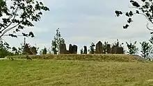 Sighthill hosts the first astronomically aligned stone circle built in Great Britain for 3,000 years, guided by Duncan Lunan. Built at the highest point of Sighthill Park, the stone circle has a vantage point over the surrounding areas.[18] There are 17 stones in the circle – with 16 forming a circle 30 feet (9 metres) across, and the largest four-tonne stone in the centre.[18] The Sighthill megalith was intended as a tribute to both the ancient megalith builders and the scientists who discovered their significance.[19] It was renovated in the late 2010s along with the rest of the district.[20][21]