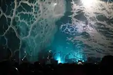 On 24 January 2013, Sigur Rós announced in a Q&A on Reddit that Kjartan had left the band, feeling it was time "to do something different".[58] They announced their seventh studio album, Kveikur, on 22 March. On the same day, they also released the album's first single: "Brennisteinn". The album was released on 14 June (releasing two days earlier in Japan, and four days later in the US) and marked both a musical and thematic change for the band, providing a more aggressive sound, compared to their previous albums. The album was well received by critics, scoring 80 on Metacritic,[59] with several reviewers praising for the band's new musical approach, as well as a lack of commercialism.[60][61] The release was marked, by the band, with a new tour, as well as an interactive musical experience, where fans could live stream a concert, taking control of the camera.[62] The band later performed at the iTunes Festival, on 2 September 2013,[63] where selected portions of their concert were later released on 21 October.[64]