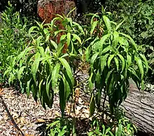 This subshrub grows 15 to 50 centimeters tall and bears white flowers. It grows on the lava and ash substrates of the volcanoes of the island of Hawaii. It grows in dry and moist forests on cliffs and slopes on Oahu and Molokai.[1] Most known populations occur at the Pohakuloa Training Area on Hawaii, for a total of just over 10,000 individuals. There are four populations on Oahu. There are fewer than 1000 individuals on Molokai.[3]