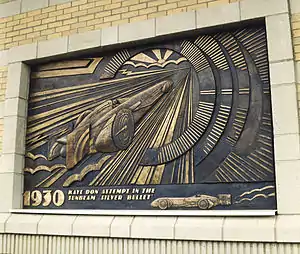 In 1996 a redevelopment of the former works site of Star cars, in St. John's, Wolverhampton into a new Retail Park saw a themed set of public art features referencing the Sunbeam Land speed record attempts. A bronze relief panel tribute to the Silver Bullet car was depicted in a bas relief, attempting the speed record with reference to Kaye Don as the driver. The whole series of artworks around the Retail site were a design collaboration of artist Steve Field and the sculptor John McKenna A.R.B.S and rendered in 1930's Art Deco manner. They showed other Sunbeam Record attempts and reference the historical industrial car making heritage of Wolverhampton.