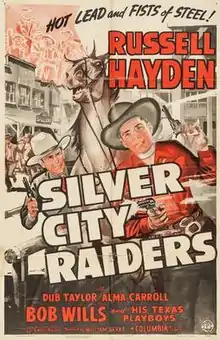 Silver City Raiders is a 1943 American Western film directed by William Berke and written by Ed Earl Repp. The film stars Russell Hayden, Dub Taylor, Bob Wills, Alma Carroll, Paul Sutton and Jack Ingram. The film was released on November 4, 1943, by Columbia Pictures.[1][2][3]