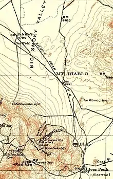The railroad was completed in July 1906, it connected to the Tonopah and Goldfield Railroad at Blair Junction (Historical),[1] located 0.7 mi south of the present Blair Junction US 6/95 and Nevada State Route 265[2] in the Big Smoky Valley.[3]