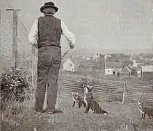 Fur farmers on Prince Edward Island gained success by breeding and caring for their foxes in captivity. Charles Dalton and Robert Oulton began crossbreeding experiments in 1894.[14] The farmers recognized the foxes' monogamous habits and permitted their studs to mate for life with a single female, contributing to their success. The fur of captive-bred foxes was of better quality than that of free-ranging ones (worth $500–1,000 rather than $20–30) because of improved care and diet. These silver foxes were bred strictly with members of their own colour morph, and by the third generation, all residual traces of red or cross ancestry disappeared. The silver fox price boom in North America ended in 1914,[14] but by 1921, there were 300 farms throughout the USA.[15]