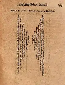 As an epigrammatist, Simmias had a place in the Garland of Meleager, and the Greek Anthology contains six epigrams ascribed to him, besides three short poems of that fantastic species called carmina figurata, that is, pieces in which the lines are so arranged as to make the whole poem resemble the form of some object; those of Simmias are entitled, from their forms, the Pteryges (Wings), the Oon (Egg), and the Pelekys (Hatchet).