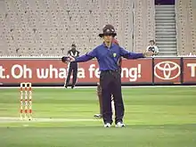 ![]() Simon Fry umpiring at the MCG | |
