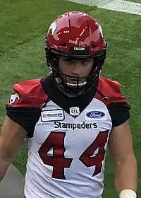 ![]() Gingras-Gagnon before a Stampeders game in 2019. | |