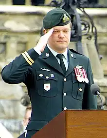 Upon graduation from RMCC, he was posted to the 3rd battalion Royal 22e Régiment in Valcartier, Quebec and quickly joined the unit as a platoon commander preparing for deployment to Afghanistan under Operation Athena. During his deployment, he lost a soldier, Cpl Simon Longtin, in an ambush that the platoon had to fight.[6] Mailloux was subsequently gravely injured in another IED explosion on 16 November 2007 which killed two soldiers, an interpreter and wounded several others.[7] Following his evacuation from the battlefield, Mailloux underwent several surgeries and months of rehabilitation before regaining his ability to walk.[8]