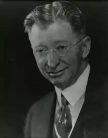 Baker had hoped to complete his plans to build a Moffat Memorial building, a chemistry building, and a stadium before retiring.[1] But, in light of the strike, he resigned on April 23, 1931, for health reasons and for "the good of the College."[1] Baker had been in ill health since undergoing a serious operation in 1930.[2] His health and temperament never recovered from the death of his only son, Lieut. Edward David Baker, an aviator who was shot down in France in 1918.[2] The trustees accepted his resignation on May 13, 1931.[1]