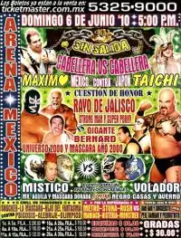 6Máximo defeated Taichi two falls to oneLucha de Apuestas, hair vs. hair match18:41