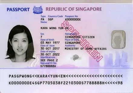 - ↑ "Singapore passport gets new design, security upgrade". CNA. Archived from the original on 23 March 2018. Retrieved 23 March 2018.