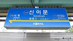 - 1 2 "신이문역" (in Korean). KRIC. Retrieved 2015-09-24.