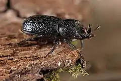 The rhinoceros stag beetle[2] (Sinodendron cylindricum), also known as the horned stag beetle, or simply the rhinoceros beetle, is a species of stag beetle native to Europe.[3][4] It is characterised by a clear sexual dimorphism.[5]