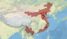 The species is found throughout China and Vietnam;[1] indeed, S. aeruginosa is one of the most common species in China.[5] It is common in the Yangtze River and Yellow River basins.[6] The distribution of S. aeruginosa includes East China (Anhui, Fujian, Jiangsu, Jiangxi, Shandong, Shanghai, Zhejiang), Northeast China (Heilongjiang, Jilin, Liaoning), North China (Beijing, Hebei, Inner Mongolia, Shanxi, Tianjin), Northwest China (Ningxia, Shaanxi), Central China (Henan, Hubei, Hunan), Southwest China (Chongqing, Guizhou, Sichuan, Yunnan) and South China (Guangdong, Guangxi, Hainan).[1] In Vietnam it is also common, but rarely reaches very high population densities.[7] The type locality is "China".[2] The species' distribution appears to have shrunk from the Middle Pleistocene to the Late Pleistocene, while a range expansion occurred in the Holocene.[6]