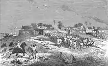 Nevertheless, Sansanding managed to defend its independence against Umar Tall and his successor Ahmadu Tall.[7] An attack in December 1863 succeeded in breaching the city walls, but the Toucouleur Empire troops stopped to pillage the town, giving time for the defenders to organize a successful counterattack. A siege from July to September of 1865 also failed.[8]