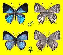 Sinthusa is a genus of lycaenid butterflies, the sparks. They are small species with the male genitalia and secondary sexual characters of Virachola, but less robust and weaker in flight. The males are easily recognized, with the forewings oily indigo blue changing to shining blue in a side light and hindwings shining violet blue in all lights. The species of this genus are found in the Indomalayan realm. The genus was erected by Frederic Moore in 1884.