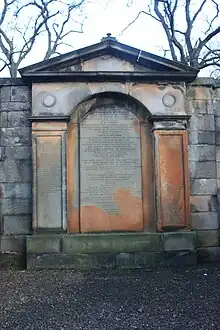 He died on 17 February 1805.[2] He is buried in the western section of Greyfriars Kirkyard in Edinburgh against the eastern wall, with his parents and children.