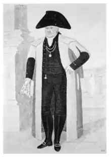 He was born in Bordeaux, France on 13 January 1763, the eldest son of Edward Marjoribanks, of Hallyards and Lees (near Coldstream), a prominent wine merchant in Bordeaux,[1] and Grizel Stewart, daughter of Archibald Stewart[2] who was Lord Provost and MP for Edinburgh during the Jacobite rising of 1745, and then tried for high treason and acquitted. Sir John's brother, Campbell Marjoribanks became Chairman of the East India Company; his brother, London merchant Stewart owned a shipping company[3] and became MP for Hythe; his brother Edward a partner in the bank Coutts & Co.;[4] and his brother James was a judge in the East India Company.[3] His family returned to Scotland from Bordeaux in 1770/1771 when the father inherited the estate of Lees.[5]
