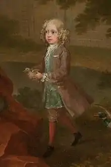 Lionel was born in Rotterdam on 28 June 1723, the son of Walter Vane, a successful merchant in London and Rotterdam.[1] Walter Vane died in March 1755 at Wanstead in Essex.[3] He had married firstly Mercy Wright, daughter of Samuel Wright of Wanstead, but she died in July 1723, shortly after giving birth to Lionel.[3][4] Walter married secondly Mary Anne Woodward, daughter and heiress of Godfrey Woodward of Putney, Surrey, the marriage being clandestine and taking place at the Fleet Prison on 14 January 1728.[3][4] Mary Anne died in London in 1756 and was buried at Wanstead.[3][4] By his first wife, Walter's son and heir was Lionel.[3][4] At some time, the family name was changed to Vane-Fletcher.