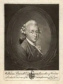 Burrell was made chancellor of Worcester in 1764, and held the same office in the diocese of Rochester, continuing in both posts till his death. He was elected M.P. for Haslemere in 1768, and became a commissioner of excise in 1774, being re-elected for Haslemere in that year. He was also FRS and FSA, and a director of the South Sea Company. By his marriage in 1773 with his cousin Sophia Raymond,[2] a noted poet and dramatist and daughter of Sir Charles Raymond, he acquired considerable wealth. His father-in-law was created a baronet in 1773 with reversion of the title to Burrell and his heirs, which allowed him to succeed Raymond as 2nd baronet in 1789.[3]