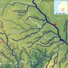 The Sirba River is a tributary of the Niger River in western Africa. The Sirba arises in Burkina Faso and flows east, crosses into Niger and then forms a short part of the international border between the two countries. It meets the Niger River at the midway point between the settlements of Gothèye and Karma in Niger, about 50 kilometres upstream from Niamey.