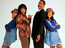 The main original cast of Sister, Sister (from left to right), Tia Mowry, Jackée Harry, Tim Reid, and Tamera Mowry as Tia and Lisa Landry and Ray and Tamera Campbell