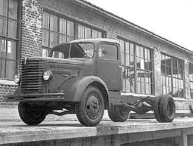 Yhteissisu finally found a suitable area for vehicle production in municipality of Vanaja, next to Hämeenlinna, where it built a facility of 25 000 m2.[13] The first prototype built in the new factory rolled out from the production line on 1 August 1945. Different from the SAT production, the model produced in the new factory was named S-22. After a short but intense testing period the serial production was started on 29 October. During the testing it came out that the lorry could not be tested at its full eight tonnes load because the maximum weight on the nearby road was limited to seven tonnes. Test run was finally permitted after the company was granted a licence to drive overweight for testing purposes.[14] The main difference between the SAT and Yhteissisu produced lorries was in wheel bearings; the S-21 used imperial units, whereas the S-22 was with metric bearings.[11]