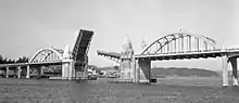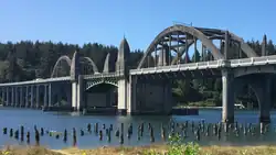 The Siuslaw River Bridge is a bascule bridge that spans the Siuslaw River on U.S. Route 101 in Florence, Oregon. It was designed by Conde McCullough, built by the Mercer-Fraser Company of Eureka, California, and funded by the Federal Emergency Administration of Public Works (later renamed the Public Works Administration). It opened in 1936.[3]
