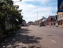 The town of Sjöbo has flat terrain, with many small houses and three long straight streets stretching through it, leading to larger roads.