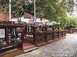 Skadarlija (Serbian Cyrillic: Скадарлија) is a vintage street, an urban neighborhood and former municipality of Belgrade, Serbia, located in the Belgrade municipality of Stari Grad (Old Town). Skadarlija partially preserves the ambience of traditional urban architecture, including archaic urban organization, and is known as the main bohemian quarter of Belgrade, similar to Montmartre in Paris.[1] Since 1967, Skadarlija has been protected by law as a spatial cultural-historical unit.[2]