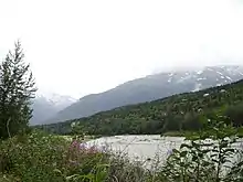 The Skagway River is a river in British Columbia, Canada and the state of Alaska, United States, flowing southwest across the international boundary at 59°32′36″N 135°01′55″W / 59.54333°N 135.03194°W / 59.54333; -135.03194 just southeast of the White Pass.[1] Flowing slightly northwest after crossing the boundary,[2] it turns south-southwest to meet the sea at the head of Taiya Inlet.[3] There is a vehicle bridge over the river at the north end of Skagway as well as two pedestrian bridges, one next to the vehicle bridge and one at the mouth of the river near the airport. The river is not navigable by raft or canoe or kayak because of the supports under the vehicle bridge and the shallow swift flowing water. In addition, there is a great quantity of scrap metal debris which has been dumped into the river over the past century. When some people have tried to raft the mile to the ocean, their rafts have been destroyed under the bridge by the accumulation of tree branches and vegetation that is choked there.