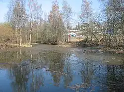 Somewhat north of Skallum farm is found the pond Egerdammen.[2] It is named after a former owner,[3] who most likely created the lake some time before 1900, damming up Skallumbekken. Today, this pond is the only trace of a waterway at Skallum, as most of the Stabekk Watershed has been led underground through a pipe system. The lake is rich on biological life,[2] and has been used as an ice skating rink during the winter.[3]