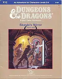 Skarda's Mirror is an adventure module for the Dungeons & Dragons fantasy role-playing game. It was published by TSR in 1987, and designed by Aaron Allston. Its cover art is by Tim Hildebrandt with interior art by Al Williamson and Jeff Easley, and cartography by Dave S. LaForce, Dennis Kauth, and David C. Sutherland III.. The module's associated code is X12 and its TSR product code is TSR 9188. This module was developed and intended for use with the Dungeons & Dragons Expert Set and Companion Set rules.