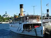 While the quay is still frequently used by ships, including international cruisers and locally well-known ships: a couple of old steamships, such as SS Blidösund (1911) and SS Saltsjön (1925); and some somewhat less genuine, such as MS Teaterskeppet, ("The Theatre Ship"), a Portuguese fishing boat built in 1959, today serving as a conference centre; and Svea Viking, originally a minesweeper built in the UK in 1943 for D-Day, then serving as ferry on Öland for many years before being transformed into a Viking ship in 1996.