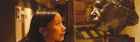 The Skirball Museum predates the Skirball Cultural Center, having been established in 1972 at the Hebrew Union College-Jewish Institute of Religion in L.A. [1] The museum moved into the Skirball Cultural Center after the center's completion. The Skirball's core exhibition, Visions and Values: Jewish Life from Antiquity to America, traces the history, experiences and values of Jews over 4,000 years. Featuring changing displays of works from the Skirball's museum collection, the exhibition's galleries contain multimedia installations, rare artifacts, historical documents and photographs, works of fine art, interactive computer stations and sound recordings that lead visitors on the Jewish people's journey, culminating with their experiences in the United States.