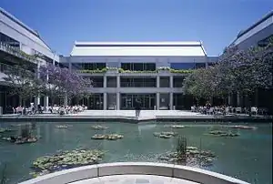 The Skirball Cultural Center, founded in 1996, is a Jewish educational institution in Los Angeles, California. The center, named after philanthropist-couple Jack H. Skirball and Audrey Skirball-Kenis, has a museum with regularly changing exhibitions, film events, music and theater performances, comedy, family, literary and cultural programs. The campus includes a museum, a performing arts center, conference halls, classrooms, libraries, courtyards, gardens, and a café. Although the center has its roots in Jewish culture, it is open to individuals of all ages and cultures.