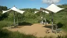 Together with Hasle Hills, Skjoldhøjkilen forms a so-called 'activity landscape' and is so far the only one of its kind in Denmark. The activity landscape have been designed to facilitate play, learning, exercise and various recreational activities for citizens of all ages in Aarhus[5] and the project have been financed by Realdania and the former Ministry for Integration. The activity landscape was inaugurated 25 May 2009.[1]