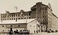 In 1902, Skobelev Brothers decided to build a new mill in Baku, but they met a serious resistance from Alexander Novikov,[4] who headed the Baku City Duma in 1902–1904.[5] Novikov especially stressed the fact that the Skobelevs were going to build “a mill in a part of the city, which, in less than ten years, will be the best in the city. The mill is an ugly, noisy, covered in soot building, causing anxiety among the neighbours. Such institutions belong to the outskirts.”[6] But the Skobelevs, having won the members of the City Duma on their side, nevertheless received the construction permit.[7] In 1904, the mill began operating with 100 workers.[8] In a short time, the mill managed to take an important place in the economic system of the region. The average annual production of this mill in 1910 exceeded 3 million rubles, which made it the largest in the empire. [2]
