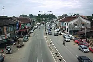 The scene of Skudai Highway passing the town of Senai.