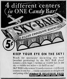 - 1 2 3 "Sky Bar 5c (advertisement)". The Boston Globe. March 18, 1938. p. 19. Retrieved November 13, 2019 – via newspapers.com.