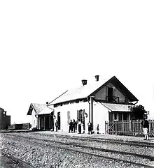 Opened in June 1894 as Vertekop railway station (Greek: Σιδηροδρομικός σταθμός Βερτεκόπ, romanized: Sidirodromikós stathmós Vertekop)[3] in what was then the Ottoman Empire at the completion of the Société du Chemin de Fer ottoman Salonique-Monastir, a branchline of the Chemins de fer Orientaux from Thessaloniki to Bitola. During this period, Northern Greece and the southern Balkans where still under Ottoman rule, and Skydras was known as Vertekop. Skydra was annexed by Greece on 18 October 1912 during the First Balkan War. The station building was built in 1916 following a decision of the French headquarters in Thessaloniki, with Serbian soldiers worked on the construction of the building. In May 1918, the station was bombed by the German air force. On 17 October 1925 The Greek government purchased the Greek sections of the former Salonica Monastir railway,[4] and the railway became part of the Hellenic State Railways, with the remaining section north of Florina seeded to Yugoslavia. In 1926 the station, along with the settlement, was renamed Skydra.[3] In 1970, OSE became the legal successor to the SEK, taking over responsibilities for most of Greece's rail infrastructure. On 1 January 1971, the station and most of Greek rail infrastructure where transferred to the Hellenic Railways Organisation S.A., a state-owned corporation. Freight traffic declined sharply when the state-imposed monopoly of OSE for the transport of agricultural products and fertilisers ended in the early 1990s. Many small stations of the network with little passenger traffic were closed down.