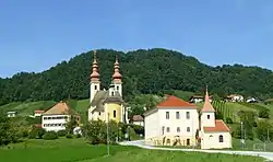 It is best known for its parish church, a pilgrimage church with a double spire dedicated to the Virgin Mary and Saint Margaret. It belongs to the Roman Catholic Diocese of Celje. It was built between 1744 and 1754.[3]