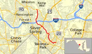 - 1 2 3 4 Google (2010-02-08). "Sligo Creek Parkway" (Map). Google Maps. Google. Retrieved 2010-02-08.