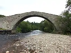 The present bridge replaces a two-arched bridge of 32 feet (9.8 m) span built by George Wade as part of a military road.[1][2] The old bridge was washed away in the floods of 1829, and the present one put up some time after.[3]