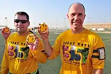 Some Pittsburghers showing off their Smiley cookies in Kuwait